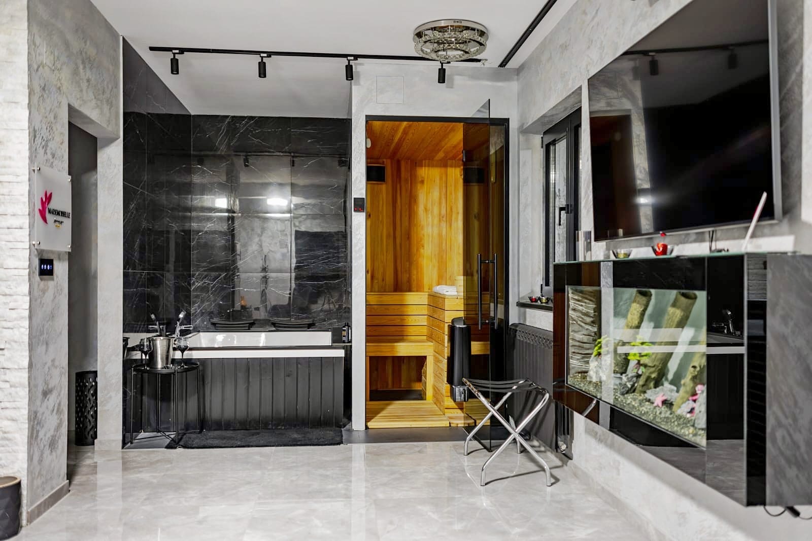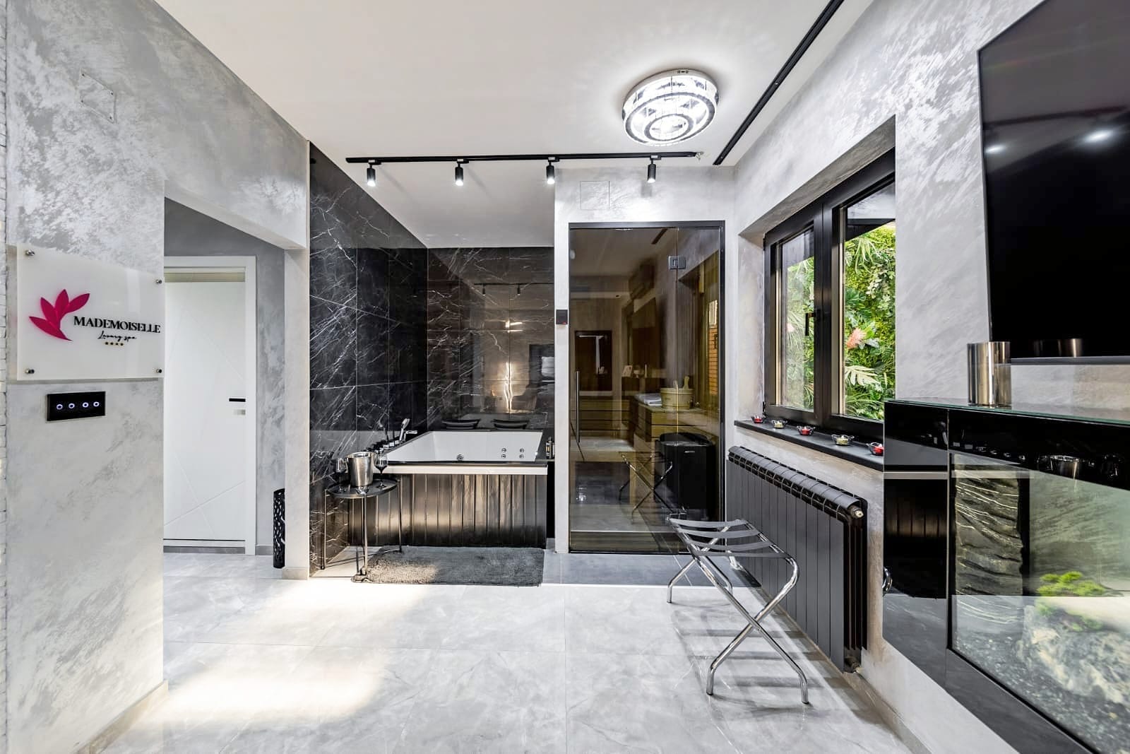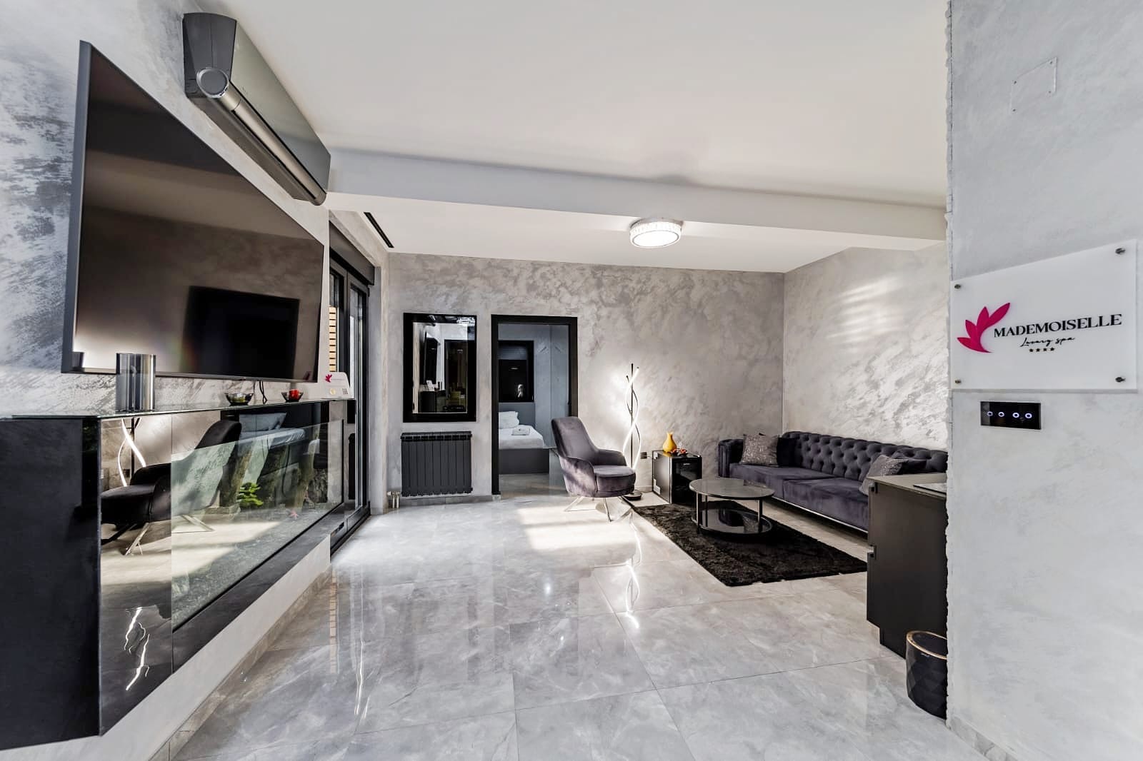 Tvoj Apartman Mademoiselle je moderno opremljen apartman sa djakuzijem i saunom koji se nalazi na opštini Voždovac . Ukoliko zelite opuštanje , mir i beg od svakodnevnice ovo je apartman za vas . Apartman poseduje odvojenu sobu , moderno opremljeno kupatilo , cajnu kuhinju sa mini barom i terasu . Ono sto ovaj apartman čini posebno primamljivim je Finska sauna i velika djakuzi kada koja je sinonim za opuštanje . Parking obezbedjen